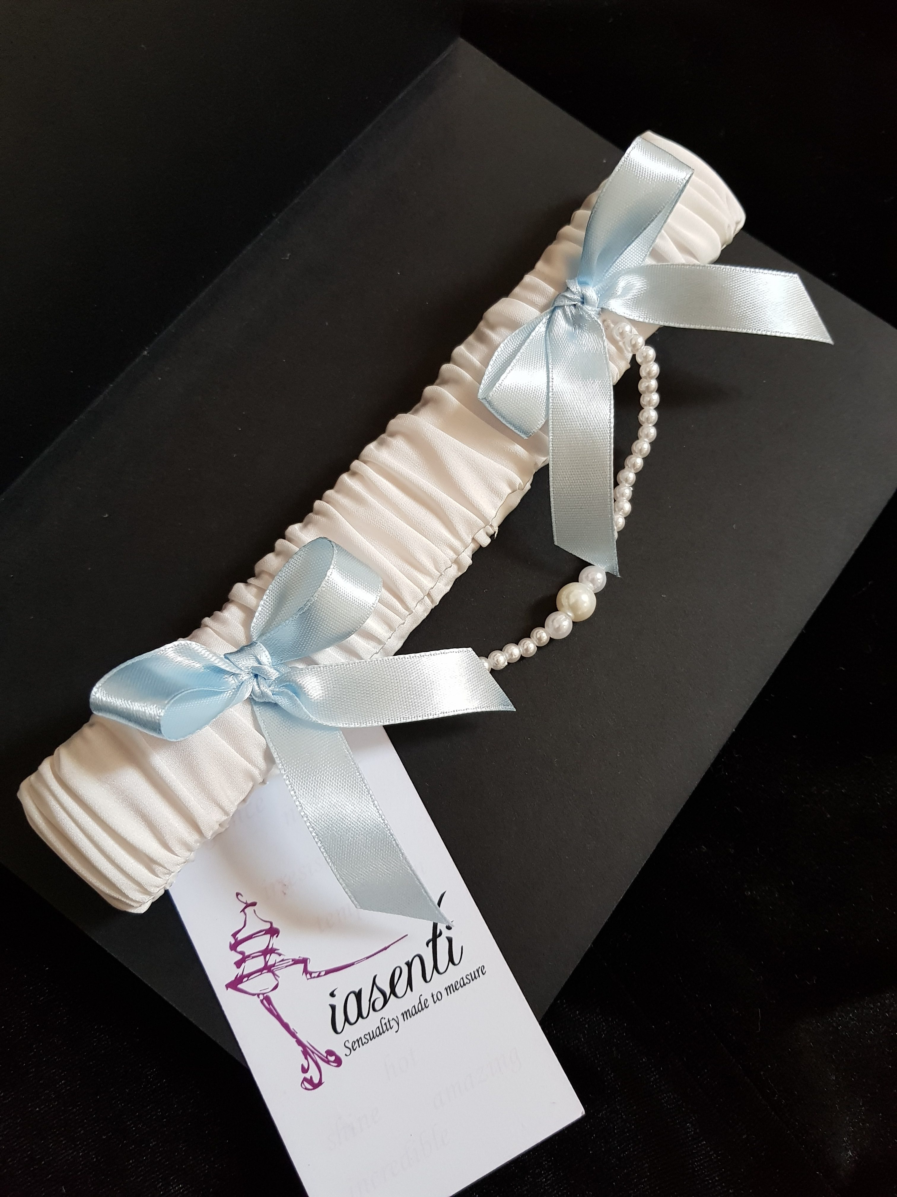 Jartiera Pearl este un accesoriu deosebit creat pentru mirese. Este cusuta manual si are detalii pretioase care o scot din anonimat.