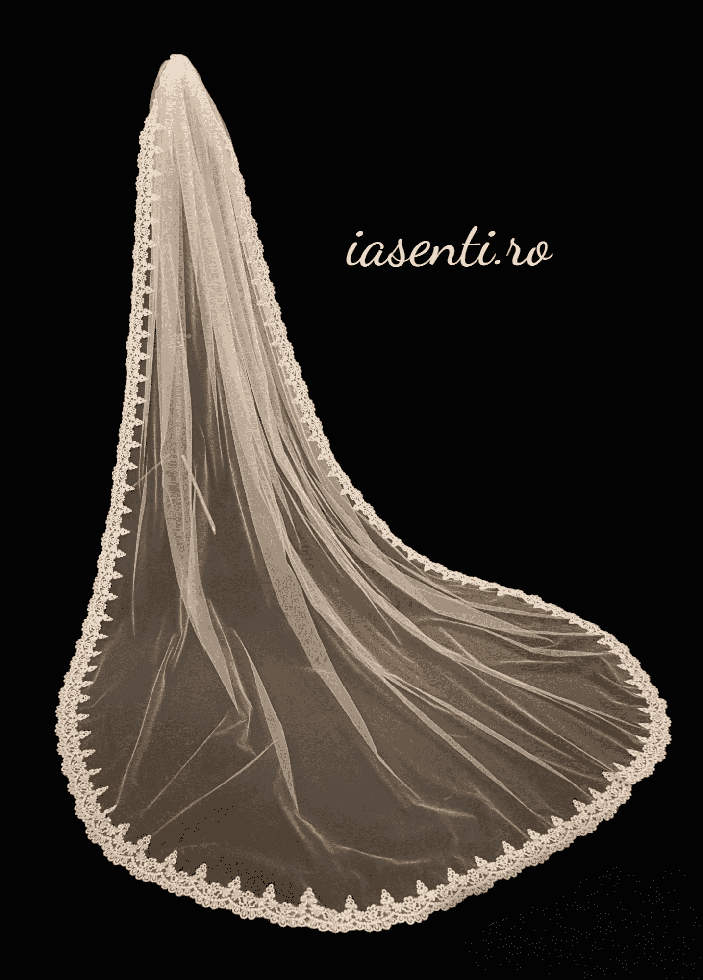 Voalul cu margine din dantela Rita este un voal elegant. Este realizat din tulle fin, lung de 3 m si lat de 2,5-2,7 m.